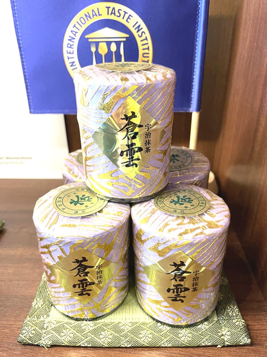 抹茶は玉露と同様、八十八夜前後に寒冷沙や葦簾棚で20日あまり覆いをして、直射日光を避けて育てた新芽を、蒸した後揉まずに乾燥させて、碾茶(てんちゃ)に仕上げます。その碾茶の葉脈や茶軸を除いて葉片を茶臼で挽いて粉にしたものが抹茶です。