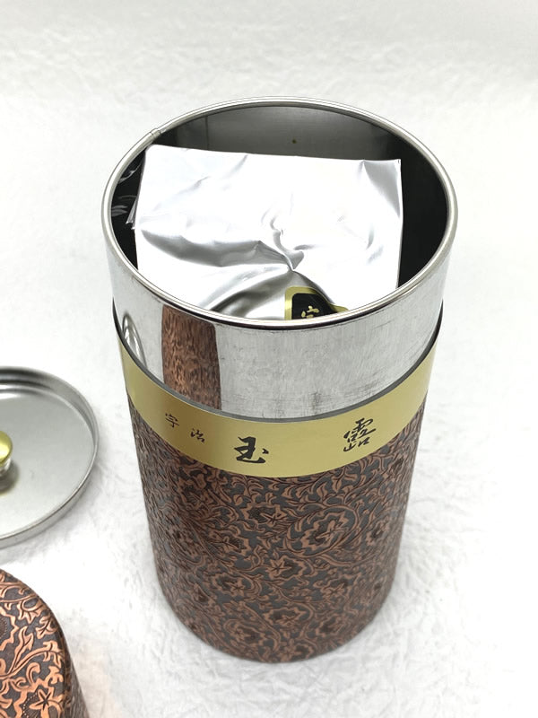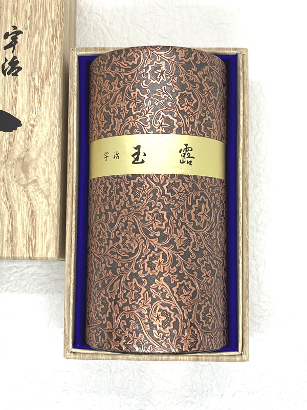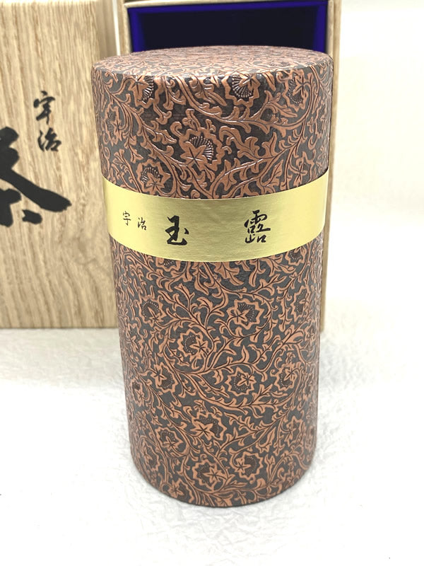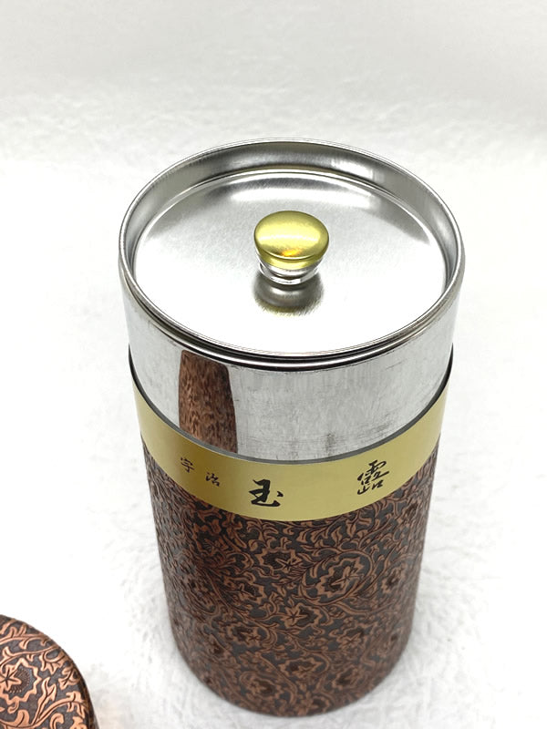 数ある京の玉露の中でも最高クラスの風味、極めて濃厚な旨みが特徴。高級玉露に相応しい彫刻装芸の施された茶筒を使い、いっそう気品漂う逸品に仕上がりました。